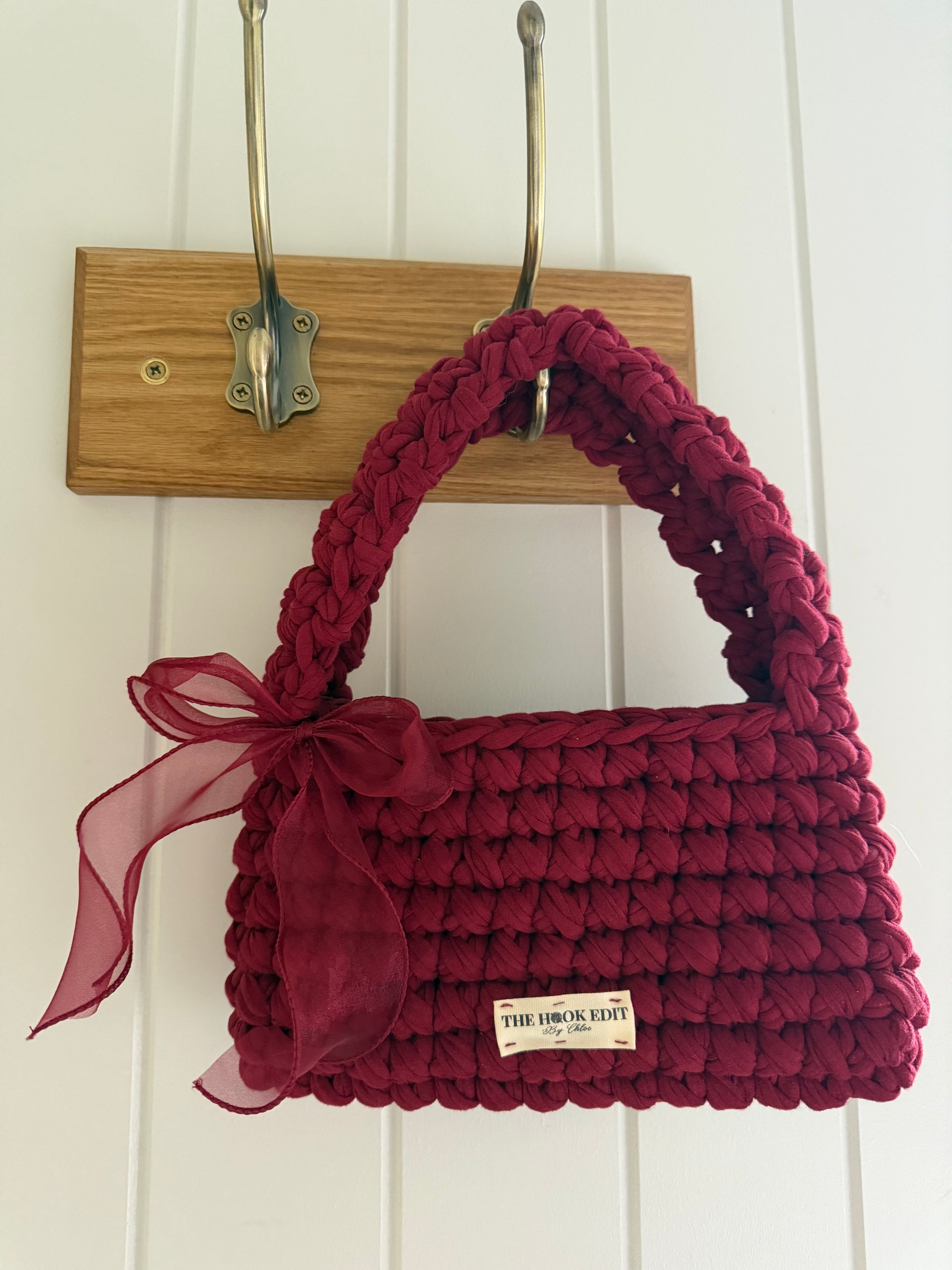 A classic red design accented with a festive bow brings playful charm and style to any Christmas outfit.
