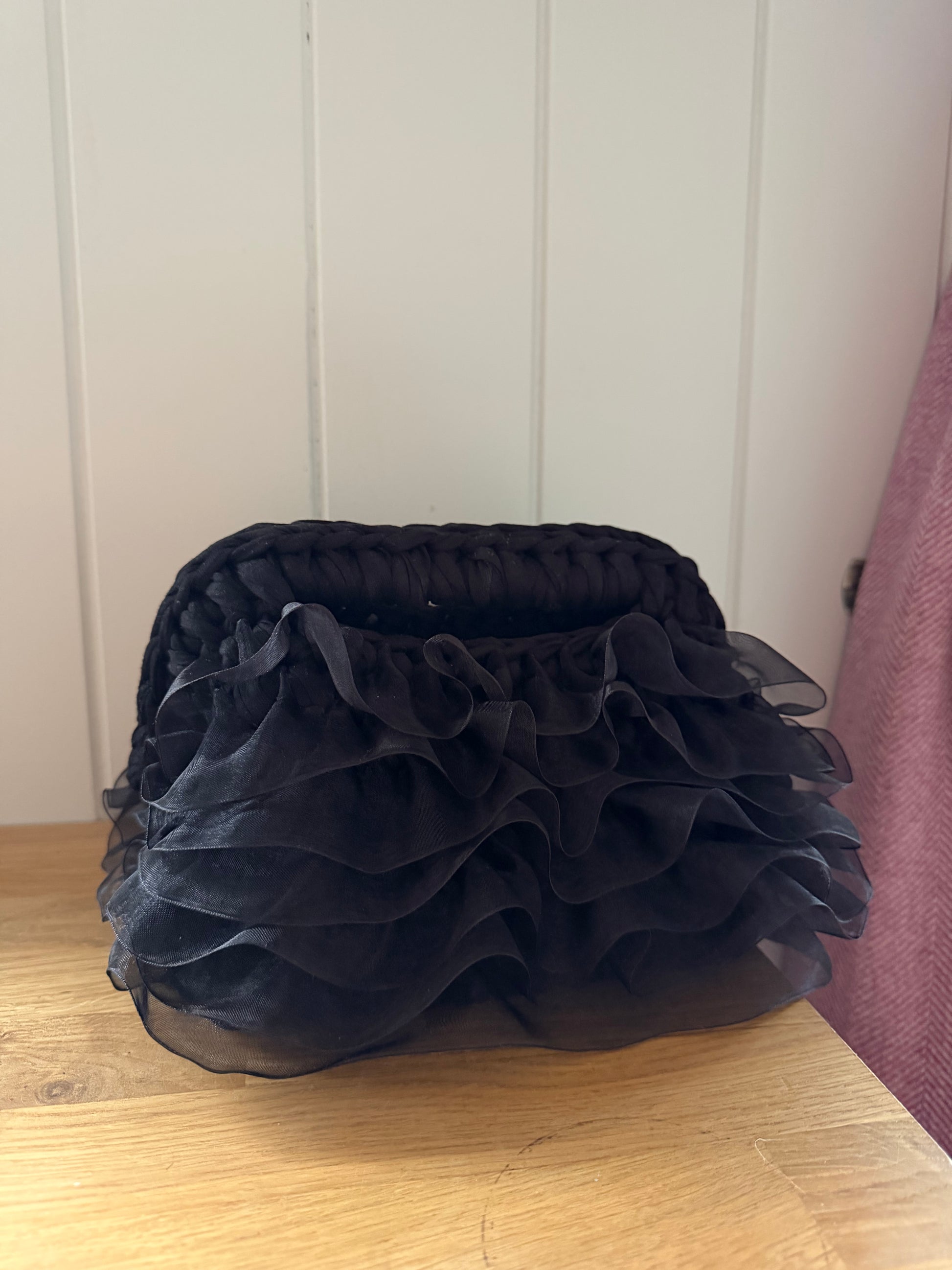 Layered black tulle gives this bag a dramatic, elegant silhouette - perfect for evening events throughout the festive season.
